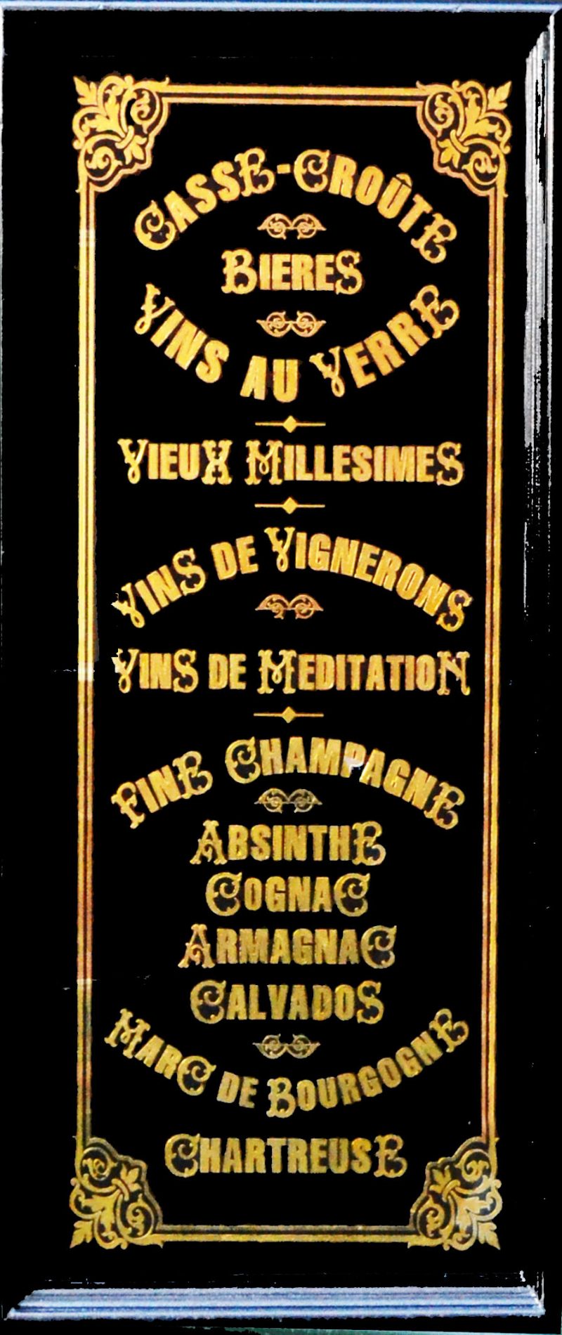 Oui, il y a bien dix pages recto-verso dans le menu consacrées uniquement aux vins de toutes les couleurs ! C’est dingue. Non loin de l’entrée du restaurant, sur la droit, on peut voir un première petite cave. L’on peut voir également, et aussi dans la salle du fond, des milliers de verres à pieds. L’on peut presque sentir l’odeur du vin s’il vous plaît, ce qui n’est pas déplaisant bien au contraire ! Les maîtres sommeliers ? Je vous avoue que je ne les ai pas rencontrer malheureusement… Mais les serveurs savent répondre (en principe) à toutes nos interrogations. Il y en a vraiment pour tous les goûts, et surement même toutes les années de cépages. C’est impressionnant. Lorsqu’on monte pour aller aux toilettes, l’on tombe encore sur trois ou quatre caves, et surtout pleins de cadres accrochés aux murs : que des récompenses, diplômes, photos, médaillons et j’en passe. Il y en a de vraiment vieux ! Pour ma part, j’ai pu goûter du blanc, du rosé et du rouge, tous étaient excellent. Seul bémol : le rosé et le vin blanc pas assez frais. Alors voilà, je tire mon chapeau à « La Bonne Franquette » pour ces vins exquis.